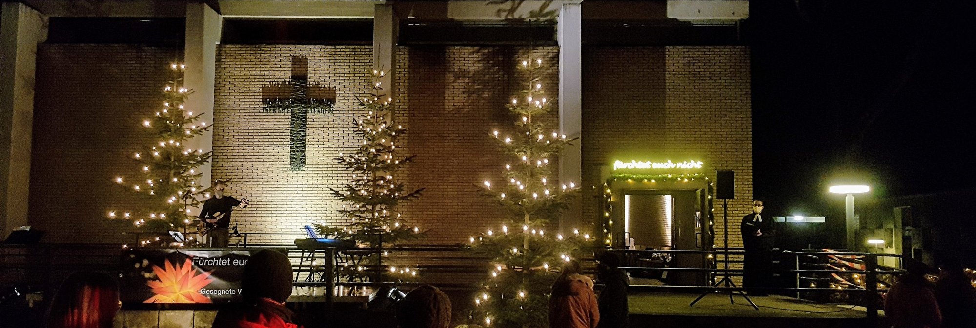 Am Heiligabend am Nachmittag feiern wir wieder draußen auf dem Felde. Wir bieten um 15 Uhr, 16 Uhr und 17 Uhr kurze Gottesdienste im Stehen vor der Kirche mit allem was dazu gehört an.
