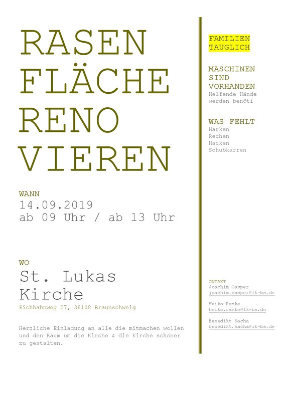 Auch die Dürrephasen der vergangenen Sommer machte vor dem Kirchencampus keinen halt. Bereits 2018 war die Rasenfläche fast vollkommen ausgetrocknet. Die Kinder, die bei FiBS dabei waren, haben dem Rasen den Rest gegeben.