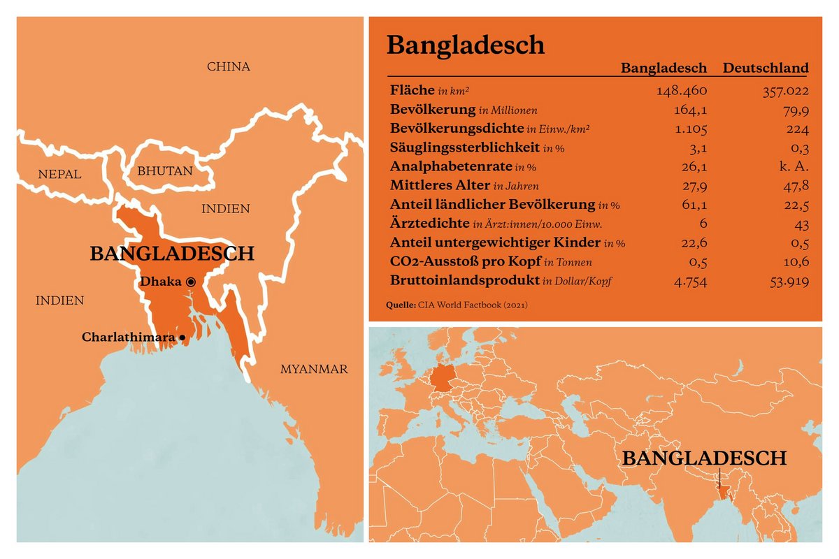 Bis vor ein paar Jahren lebten die Menschen in Charlathimara von Fischfang und Reisanbau. Doch seit immer mehr Wirbelstürme das Meer aufwühlen und Salzwasser ins Landesinnere vordringt, müssen sie neue Einnahmequellen finden. Das ist Herausforderung und Chance zugleich, vor allem für die Frauen.