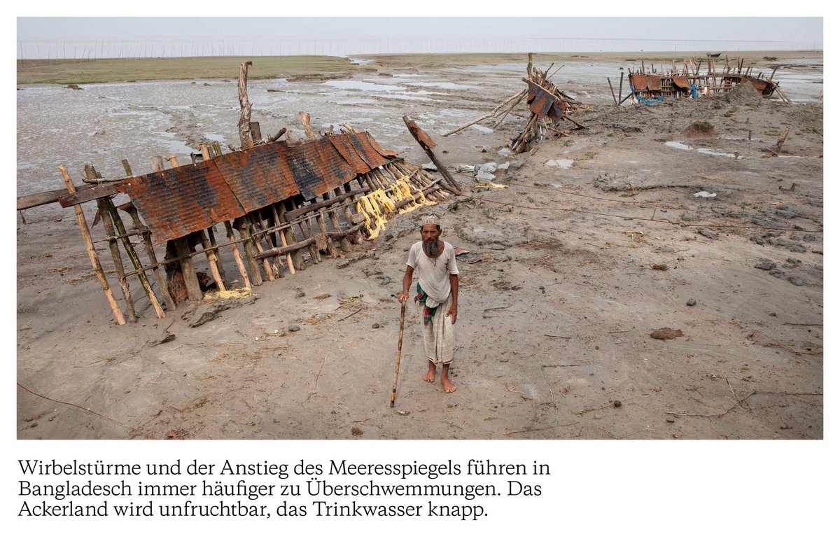 In der Küstenregion von Bangladesch sind die Folgen des Klimawandels so heftig zu spüren wie in kaum einer anderen Gegend der Welt. Jedes Jahr rasen mehrere Wirbelstürme über das Land, gefolgt von Flutwellen, die Böden und Grundwasser versalzen. Auf den Äckern gedeiht nur noch wenig, die Fischer können immer seltener aufs Meer hinausfahren.